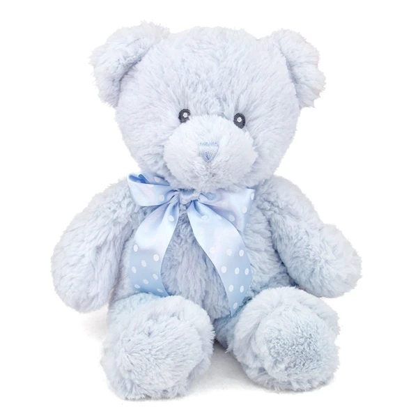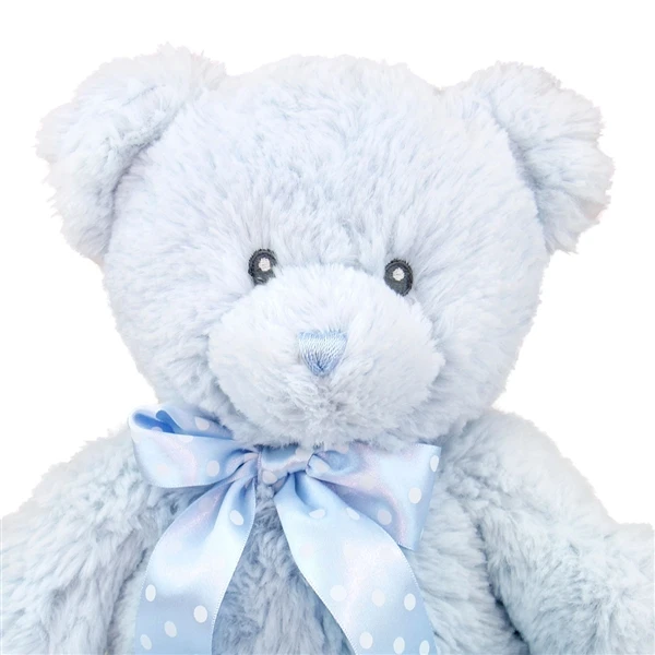 Give the new baby in your life the timeless gift of our 12 Inch Baby Safe Classic Plush Blue Teddy Bear by Ebba. Made from a heavenly soft blue plush that babies love to touch, our 12 Inch Baby Safe Classic Plush Blue Teddy Bear features embroidered eyes, nose, and has no poly beans for added security. It is accented with an attached polka dot blue satin ribbon.