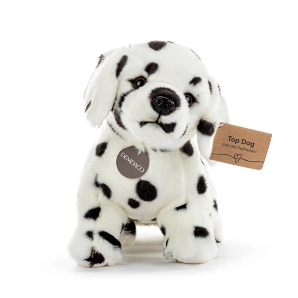 Dalmatians used to be used as coach dogs alongside fire engines – clearing a way through the crowds so the firefighters could get through – and while the Animalcraft 13.5 Inch Plush Dalmatian Dog by Demdaco doesnÂ’t help to fight fires, he will definitely make people step aside when they see him coming, if only for his stunning good looks. At around 13.5 inches, this plush dalmatian dog is large enough to fill your arms and your heart with every cuddle but is lightweight enough to make carrying him a pleasure, meaning you can bring him with you wherever you go. With the distinctive black and white coloring, the Animalcraft 13.5 Inch Plush Dalmatian Dog by Demdaco is the perfect gift if youÂ’re looking for a less-usual breed of plushie, and because of his monochrome coloring he will fit into any décor, too. Soft and fuzzy with expressive eyes and a dear little nose, this stuffed dalmatian also has airbrushed details to give him a more realistic look, so you can have a lifelike pupper with the right amount of whimsy. Of course, you might be worried that such a beautiful coat could lose its good looks through months and years of cuddling, but the Animalcraft 13.5 Inch Plush Dalmatian Dog by Demdaco is actually machine washable so you can keep him looking perfect forever.
