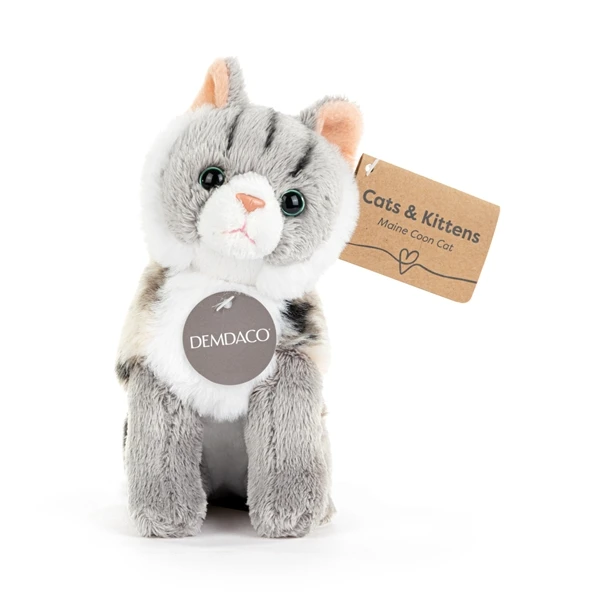 Carrying an 18lb kitty in your pocket just isnÂ’t feasible, which is why the Animalcraft 6 Inch Stuffed Gray Maine Coon Cat by Demdaco exists. At around 6 inches, this plush Maine Coon cat is filled with beans to give her a substantial yet subtle weight, so youÂ’ll know sheÂ’s there without her being too heavy. With a beautiful gray and white coat, the Animalcraft 6 Inch Stuffed Gray Maine Coon Cat by DemdacoÂ’s back has the most remarkable markings you will ever see, as though her back has been speckled with dark paint from a brush, giving her a look thatÂ’s totally unique. Perfectly suited to being walked on a leash, these cats can be more like dogs than…well…dogs, but you wonÂ’t have to worry about training this stuffed Maine Coon cat to walk nicely on a leash because she can sit prettily in your pocket without any chance of her jumping out. Beautifully airbrushed to give her a sweet yet realistic look, the Animalcraft 6 Inch Stuffed Gray Maine Coon Cat by Demdaco has huge green-ringed, shiny eyes and the cutest little pink nose, while her ears are lined with pink to really make them stand out.
