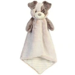 Dogs are loyal, loving, and fun to be around, just like Cuddlers Pocko the Puppy Luvster Baby Blanket by Ebba. With the smiliest face no child could resist, this puppy baby blanket has the head and arms of a stuffed plush toy with a super soft blanket as his body, so your baby really will have the best of both worlds. Cuddlers Pocko the Puppy Luvster Baby Blanket by Ebba is made with a beautifully neutral creamy beige fur and has contrasting brown ears and arms, and a patch over one eye, giving him a delightfully lopsided look thats utterly endearing. Surface washable so he can withstand light spills and splashes, Cuddlers Pocko the Puppy Luvster Baby Blanket by Ebba is designed to be played with day in and day out, and as he is safe for babies from 0 months and over, he will be by your childs side every day as they play. He also makes a comforting companion for naps and night-time because his face is embroidered, meaning hes safe for cuddles all night long. Measuring approximately 16 inches, this sweet baby blanket is easy to carry in a bag or under-stroller basket so theres no need to leave him behind.