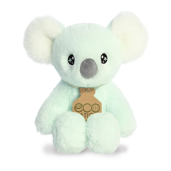 Some people might say you have to go down under to see a koala, but even then you wont find a mint-colored koala. Thats why its actually better to look for koalas at Stuffed Safari! Eco Nation Spearmint the Stuffed Koala by Aurora has embroidered features including eyes with an adorable little twinkle in them, soft plush and is made from 100% recycled materials. This stuffed koala is a great sidekick for any adventure, and it makes it even cooler than its made from recycled materials. Theres no better feeling when snuggling up with your new stuffed friend than knowing that it was made thoughtfully in regards to our planet. If youre looking for an adorable, loveable stuffed animal but youre also trying to reduce your personal footprint, the Eco Nation Spearmint the Stuffed Koala by Aurora is a great choice. After one look into these twinkling, embroidered eyes, youll be hooked! The Eco Nation line by Aurora is full of environmentally conscious plush, so you can have peace of mind knowing that your new stuffed friend didnt contribute to global plastic pollution. And luckily you dont have to compromise on cuteness to have a stuffy thats eco friendly! The Eco Nation Spearmint the Stuffed Koala by Aurora, as well as all of the Eco Nation plush items, are made with fabric and stuffing made from recycled plastic bottles, they have embroidered eyes instead of plastic, and they have no plastic beans inside. You wont find any unnecessary plastic here!