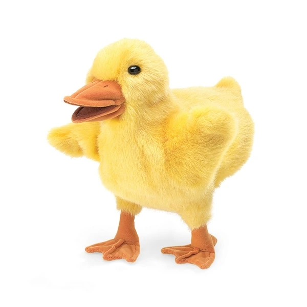 As with the entire line of plush puppets by Folkmanis, the Full Body Duckling Puppet is durably constructed to withstand numerous puppet shows, story times, and the expected demands of quality playtime. These fantastic puppets are made with all new materials and meet or exceed all U.S. safety standards. Recommended for ages three and up, surface washing is suggested for this plush duckling puppet.