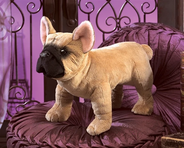 As with the entire line of plush puppets by Folkmanis, the Full Body French Bulldog Puppet is durably constructed to withstand numerous puppet shows, story times, and the expected demands of quality playtime. These fantastic puppets are made with all new materials and meet or exceed all U.S. safety standards. This plush French bulldog puppet is recommended for ages three and up and is surface washable.