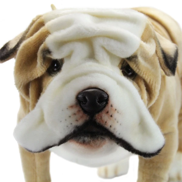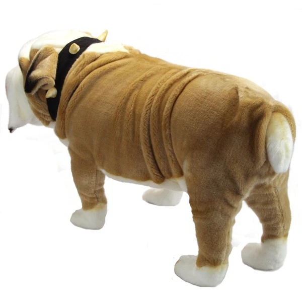 The Handcrafted 30 Inch Life-size English Bulldog Stuffed Animal by Hansa is a visually stunning and carefully designed stuffed animal that will last a lifetime. Our life-size stuffed English bulldog looks amazing, is a blast to play with, and is educational too! Hand cut fabrics, hand sewn stitches, and a hand finished face are just a few of the things that go into the thoughtful and highly skilled creation of our stuffed English bulldog. This exceptional level of hands-on crafting and individual care ensures that each life-size English bulldog stuffed animal has a truly unique appearance. The intricate care put into creating this stuffed English bulldog is only a fraction of the loving care that it will soon receive from its fortunate new owner. The specific characteristics of a real English bulldog come alive in this stuffed animal with pinpoint accuracy and its realistic size makes it a one of a kind gift for nature lovers, plush collectors, and children.