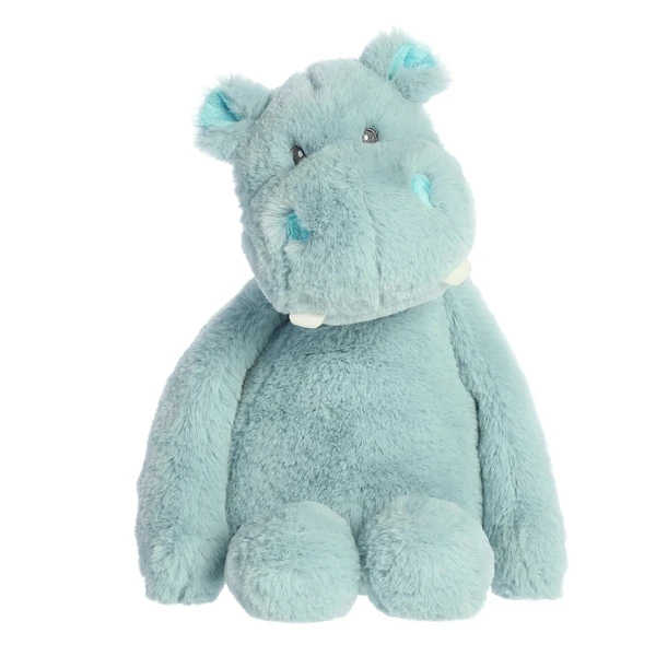 The usual thing to do to a blue hippo is to tell jokes, but the Hugeez Baby Safe Plush Hippo by Ebba is already as happy as can be, and is blue in color only. Measuring approximately 15 inches, this dear plush hippoÂ’s coat is a gorgeous pastel teal blue, and is as soft and luxurious as can be, to make cuddle time even more comforting. With embroidered features to keep her super soft and safe for all, the Hugeez Baby Safe Plush Hippo by Ebba also has darker teal accents to complement her coat, including her nostrils and inner ears, while her pearly white teeth add a gloriously goofy touch. Floppier than other stuffed hippos, the Hugeez Baby Safe Plush Hippo by Ebba is simply divine to snuggle up with, and can also be posed in a number of positions so you can mold her just the way you want her. A huge comfort when youÂ’re feeling under the weather, this hippo stuffed animal will nurse you back to health in no time at all, and because she has taken the hippo-cratic oath, she will keep all your secrets, too, making her the very best kind of friend to have.