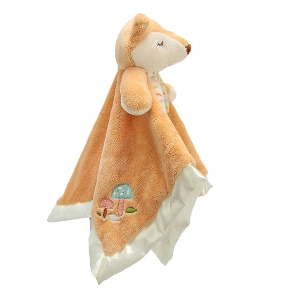 This precious Jordan Fox Baby Safe Plush Snuggler by Douglas makes a perfect cuddle buddy for any baby. The super soft baby blanket has the head of a fox at its center. That’s right, it doubles as a plush fox with baby safe embroidered facial features! The fourteen square inch baby blanket is edged with soft satin fabric that provides extra comfort and added sensory stimulation. Be sure to check out our Baby Safe Plush pages for coordinating pieces. Themed plush toys make wonderful baby shower gifts and decorations! The entire line of Douglas Cuddle Toys, including this fox baby blanket, is made with all new, child safe materials, is rigorously tested for quality assurance, and meets or exceeds all U.S. safety requirements as well as the voluntary Toy Safety Standards. Recommended for ages birth and up, the Jordan Fox Baby Safe Plush Snuggler is conveniently machine washable.