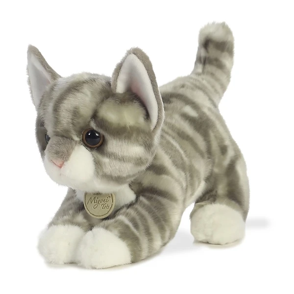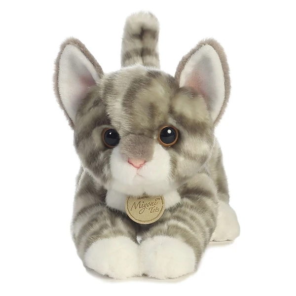 Aurora World Inc. is one of the world’s most popular plush companies with over 25,000 retail outlets worldwide. Their products can be found in major zoos, department stores, gift shops, and at StuffedSafari.com, of course! Aurora stuffed animals are incredibly well made with a focus on durability, safety, and most importantly, cuteness. As with the entire line of Miyoni stuffed animals by Aurora, the Realistic Stuffed Gray Tabby Kitten 9 Inch Plush Cat is made with all new, child safe materials and meets or exceeds all U.S. safety standards. Recommended for ages three and up, we suggest surface washing for this realistic gray tabby kitten stuffed animal.