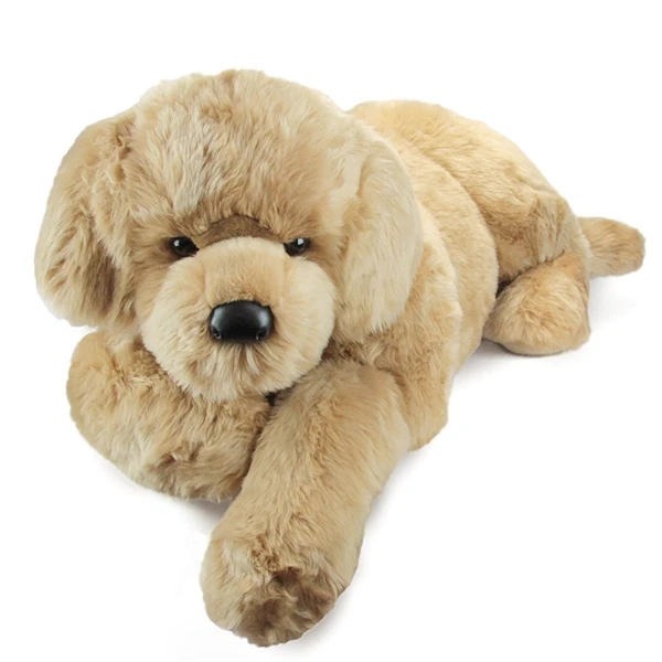 Sherman the Jumbo Stuffed Golden Retriever by Douglas is a highly lifelike, extra large stuffed dog that consists of top quality fabrics, excellent craftsmanship, and authentic detailing. This big plush golden retriever measures thirty-one inches long and showcases breed specific colors and an amazingly realistic appearance. The durable construction of Sherman the Jumbo Stuffed Golden Retriever makes it a fantastic playmate that can withstand years of enjoyable adventures. If you know a golden retriever lover, or are one yourself, then this huge golden retriever stuffed animal is the perfect choice for collecting, displaying, or decorating. As with the entire line of Douglas Cuddle Toys, Sherman the Jumbo Stuffed Golden Retriever is made from all new child safe materials, is rigorously tested for quality assurance, and meets or exceeds the U.S. Government and voluntary Toy Safety Standards. Recommended for ages two and up, we suggest surface washing for our big stuffed golden retriever.