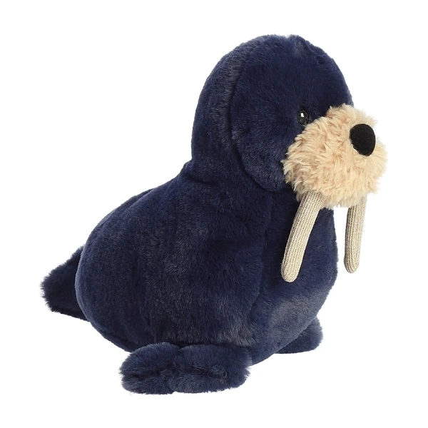 Splasheez Baby Safe Plush Walrus by Ebba is just tooth cute for words! Made in a beautiful midnight blue plush fabric, this stuffed walrus measures approximately 9 inches – a lot smaller than the ones in the wild who can grow to a whopping 11.5 feet and can weigh up to 1 and a half tons. While these funny marine mammals usually use their tusks for cutting through ice, Splasheez Baby Safe Plush Walrus by Ebba uses hers for added cuteness, because they are soft and sparkly with a gorgeous glitter knit. With embroidered eyes and a fluffier cream-colored face, this velvety soft stuffed walrus likes to be warm and cozy, unlike her ocean-going cousins who can live in temperatures of minus 35F – bbrrrr. A wonderful best friend for your baby, Splasheez Baby Safe Plush Walrus by Ebba will keep them company from dawn til tusk, and don’t worry if all that cuddling makes this sweet sea creature a little grubby; it’s nothing a little surface washing won’t fix. Happy to stay in the crib or accompany your baby in the car, this plush walrus is great at multi-tusking, and will adapt to whatever surroundings she’s in.